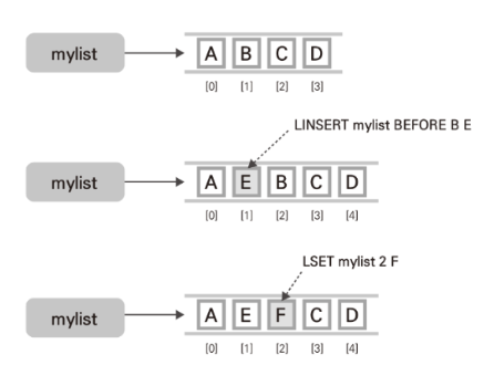 LPUSH mylist "A" # mylist의 왼쪽에 "A"를 추가한다