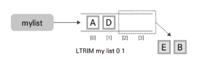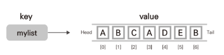 RPUSH mylist "B" # mylist의 오른쪽에 "B"를 추가한다