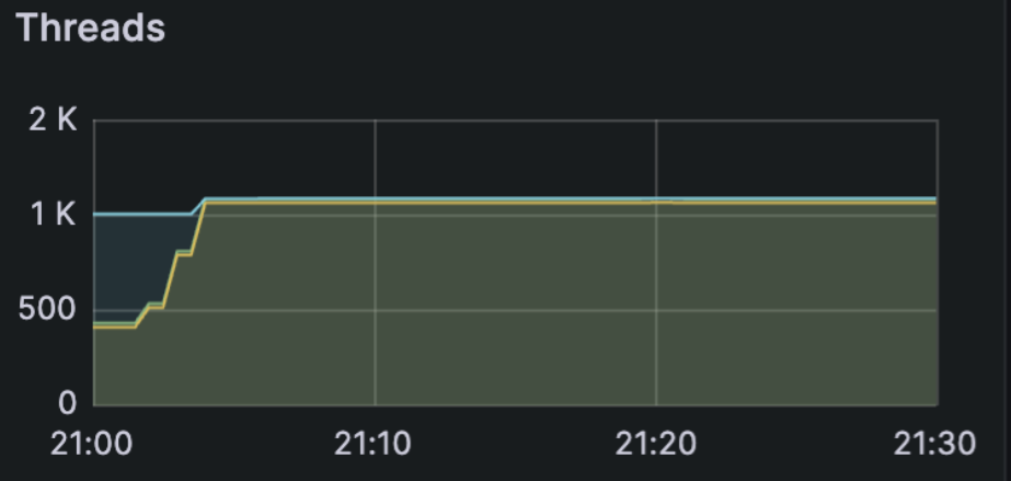 - 스레드는 급격히 증가한 후 peak치 유지한 후 점진적으로 감소