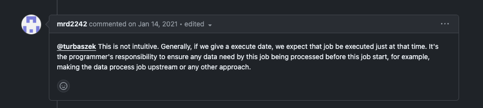 그것을 위해 execute date라는 개념이 있었다. 참고로 이 개념이 등장했을 때 해당 버전대의 airflow Issue 항목중 그것이 직관적이지 않다는 지적도 나왔던 것으로 보인다.